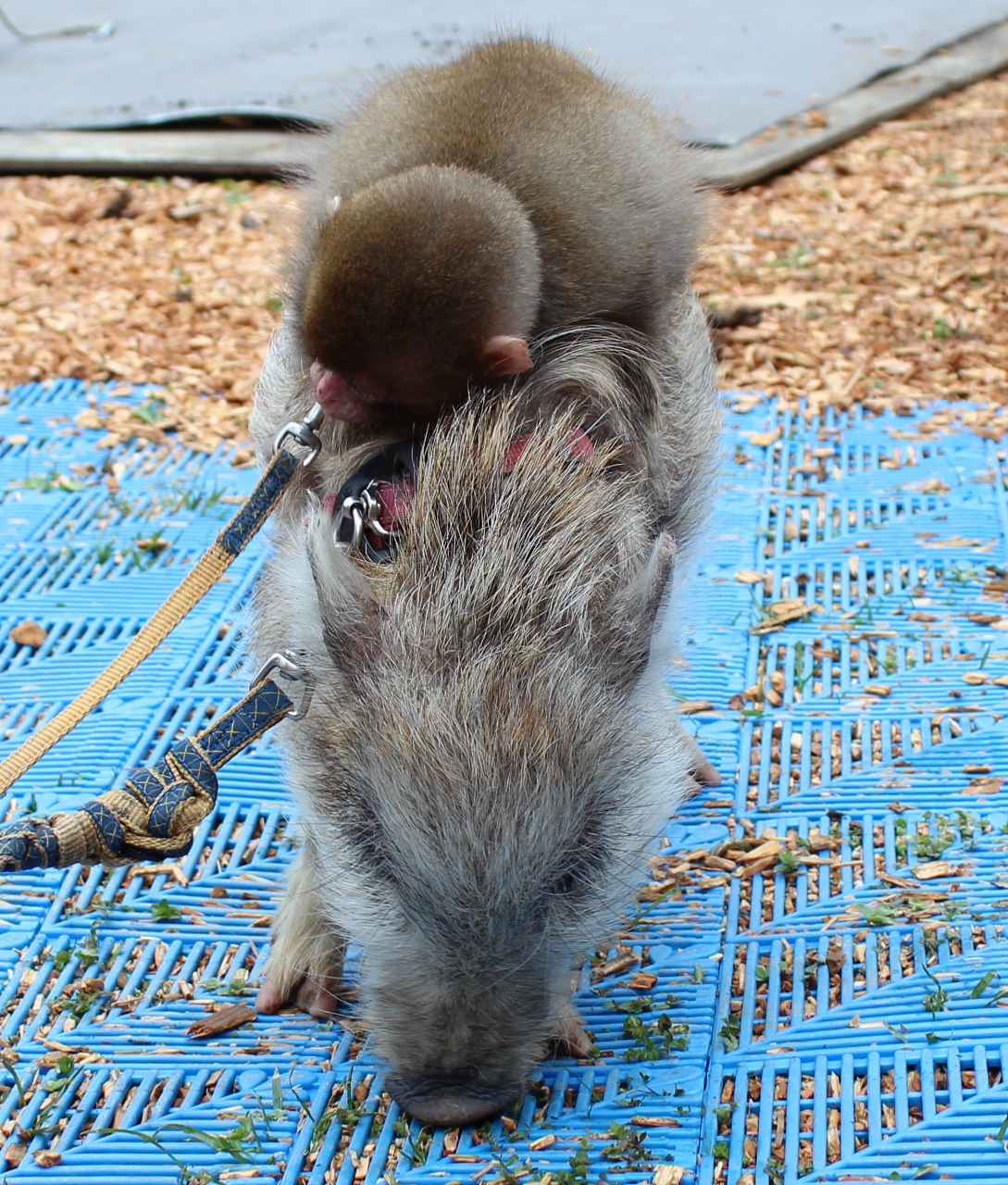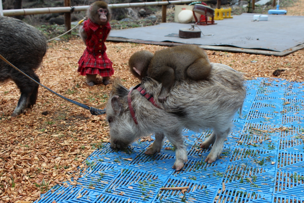 猿回しの方が来ていて瓜坊?の上に子猿がしがみついていました~